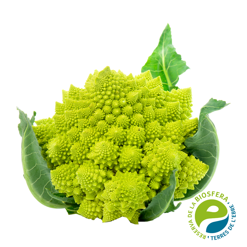 El bròquil romanesco és una de les verdures més singulars de l’horta, reconeixible a l’instant per la seva forma fractal i el seu color verd clar intens. Més suau i delicat que el bròquil tradicional, ofereix una textura ferma però tendra i un gust subtilment dolç i vegetal que agrada a grans i petits. És ideal tant per a receptes senzilles com per a plats més creatius, aportant personalitat, color i elegància natural a la cuina d’hivern. Fresc, sorprenent i nutritiu, el romanesco és una verdura que entra pels ulls… i conquista al plat.